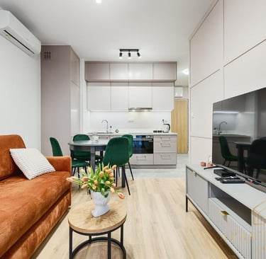 Nowoczesny i elegancki apartament Orange to idealne miejsce dla osób ceniących wygodę, styl oraz świetną lokalizację w sercu Łodzi.